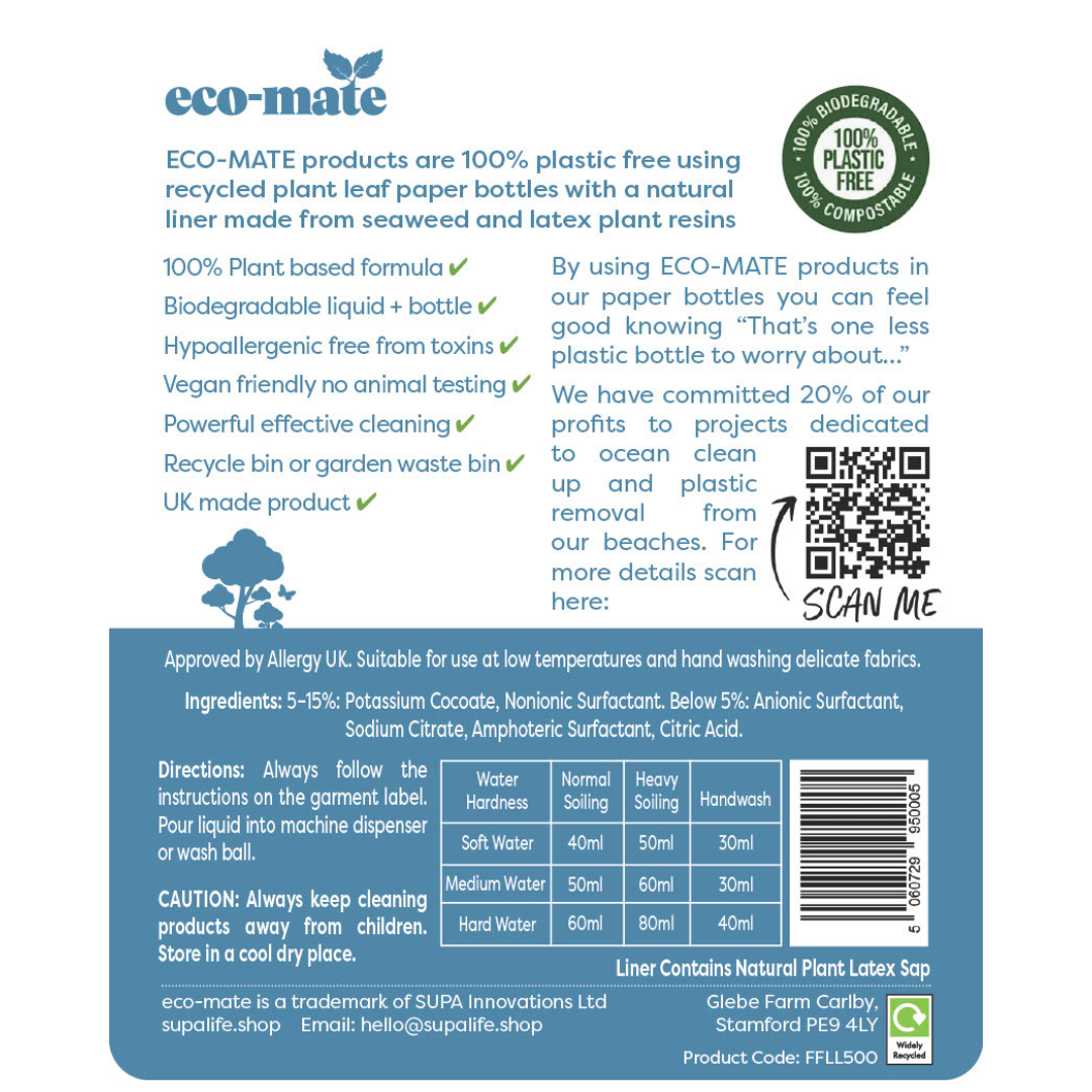 Our fragrance-free concentrated non-bio, Eco Laundry Liquid or Natural Laundry Liquid is super-gentle but super-effective concentrated formula (75 washes/6 bottles) can be used at low temperatures and for washing delicate fabrics by hand.