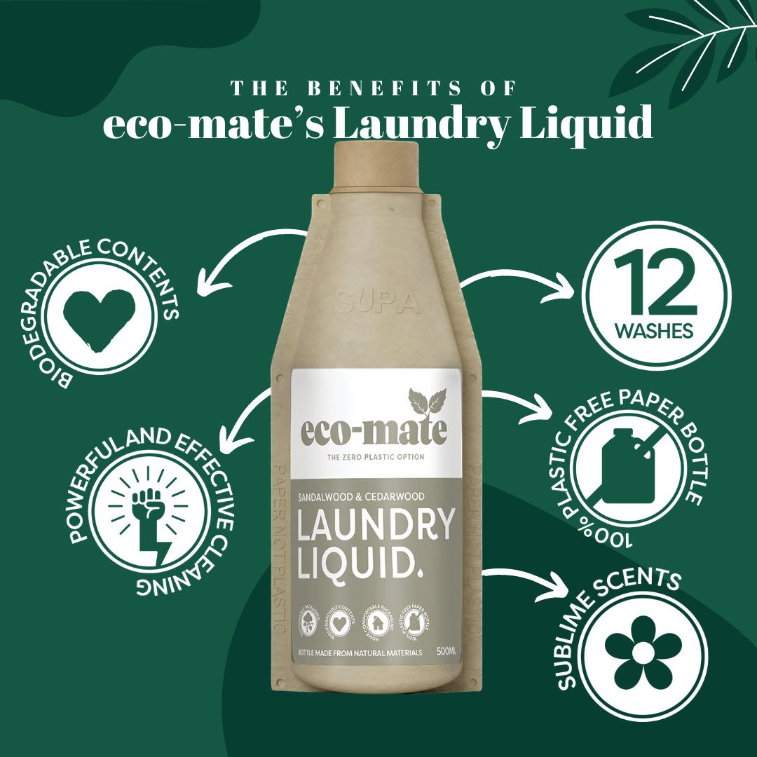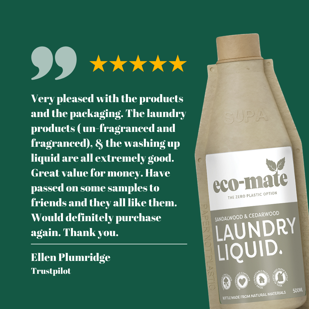 I’ve been using the laundry liquid and it’s great. I’m trying to cut back on plastic consumption and eco mate proves that even liquids can be stored without any plastic. So far I’ve used the lavender laundry liquid and the clothes smell nice. I sometimes get a skin reaction to laundry liquid but all ecomate range is fine for me.